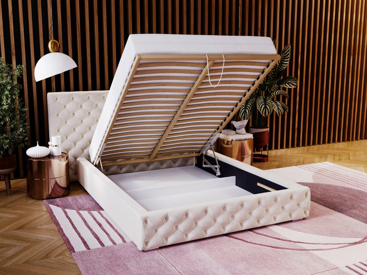 Łóżko tapicerowane z pojemnikiem i stelażem 160x200 cm Madera Beżowe