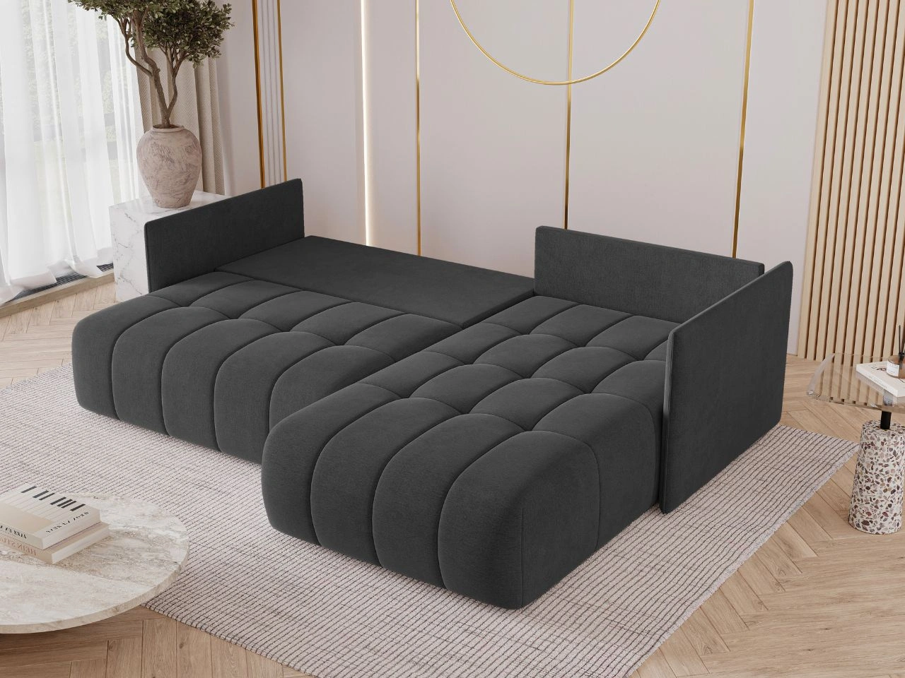 Narożnik L uniwersalny z funkcją spania i pojemnikiem Ardi Antracytowy