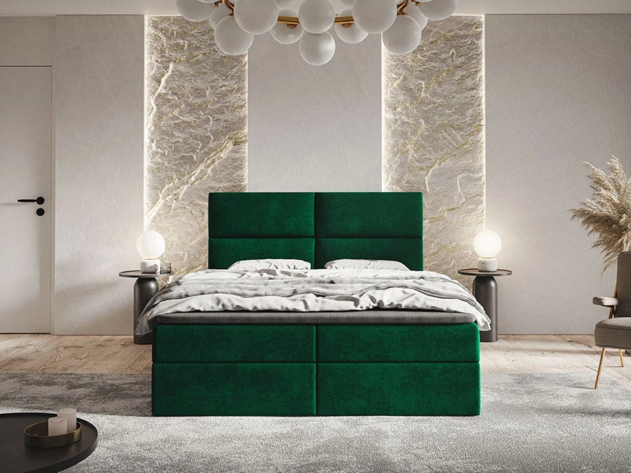 Łóżko kontynentalne z pojemnikiem na pościel 180x200 Hera Zielone