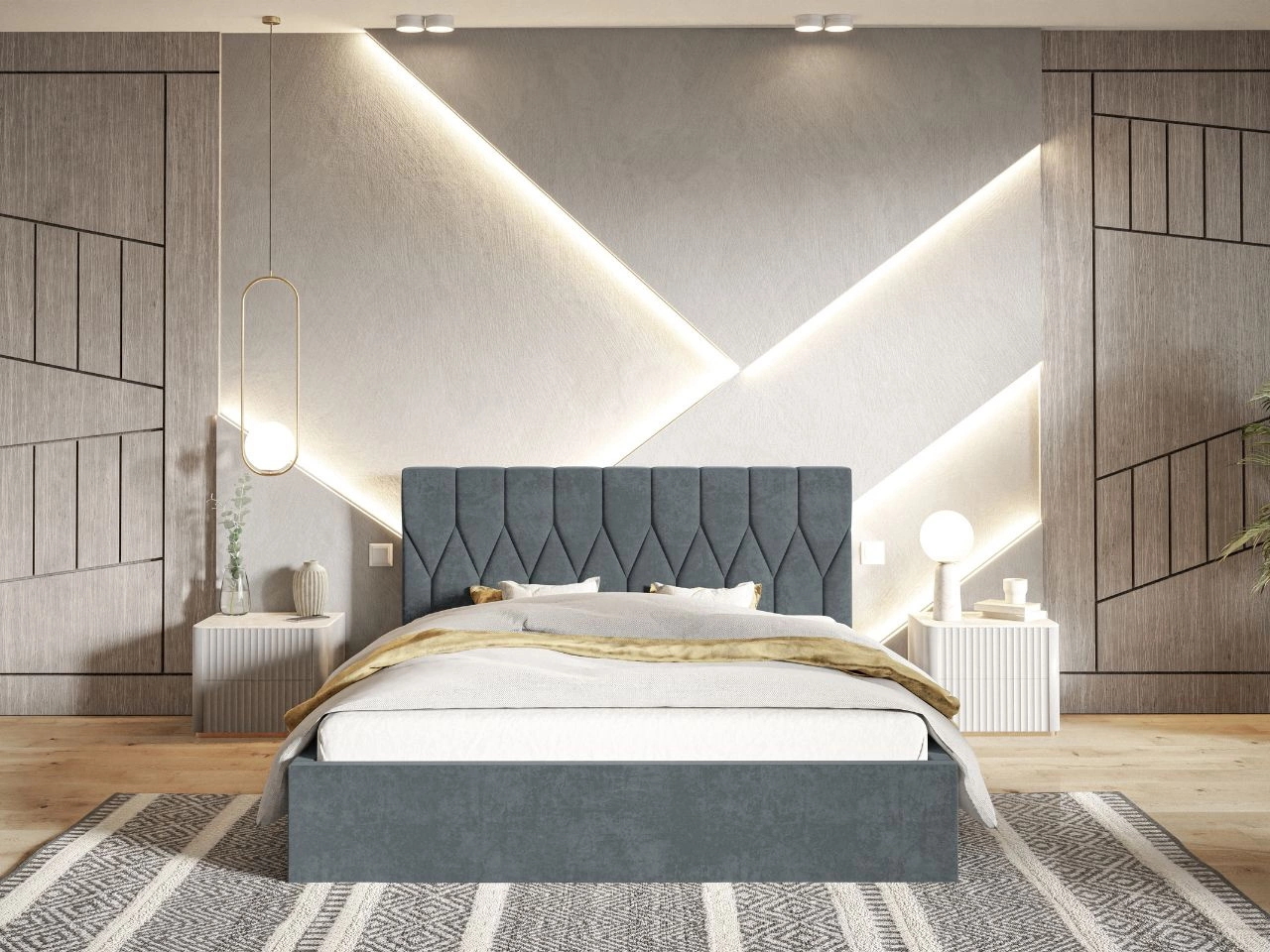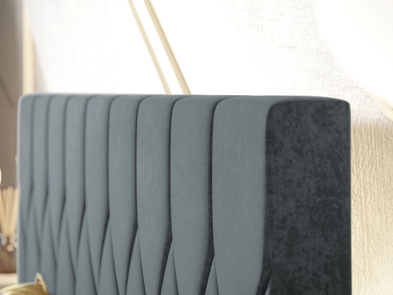 - Miękko wykończone tapicerowane wezgłowie