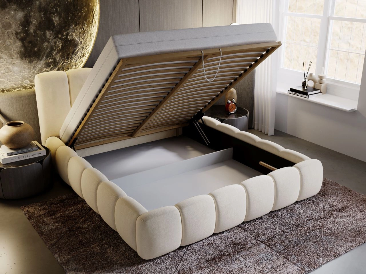 Łóżko tapicerowane z pojemnikiem i stelażem 160x200 Cloud Beżowy
