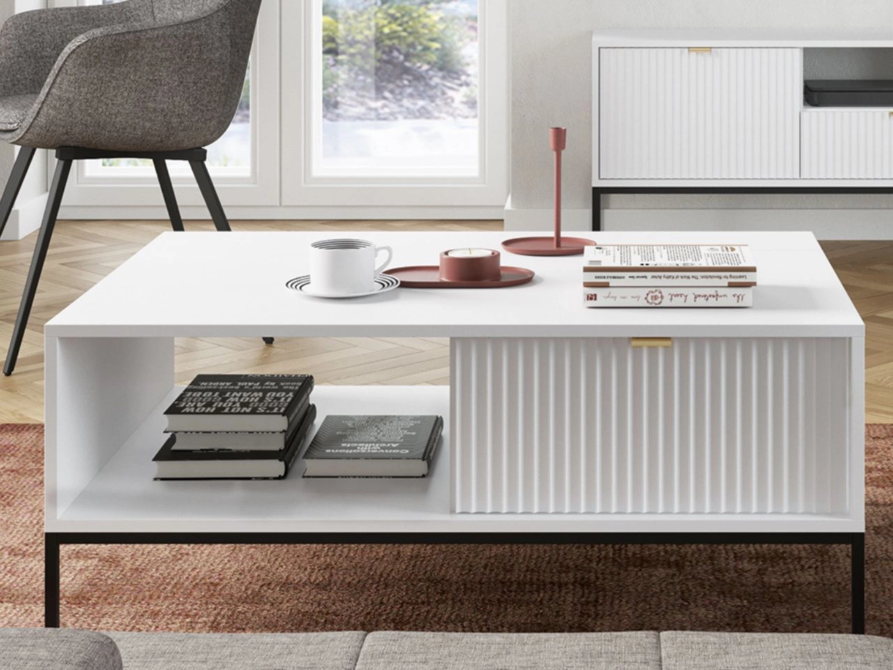 Zestaw mebli do salonu Amber biały na czarnych nogach