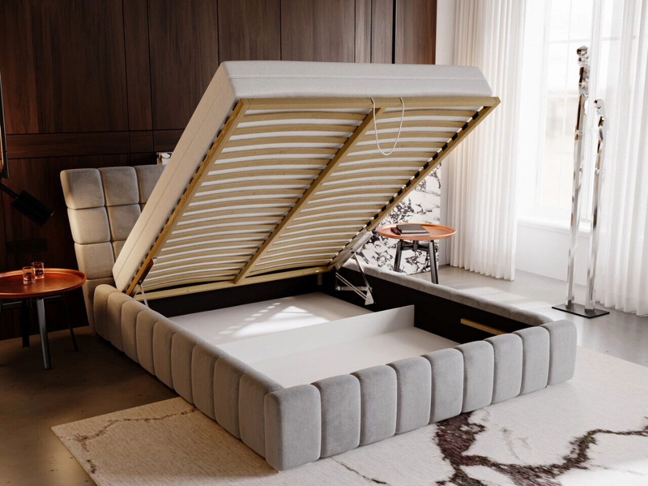 Łóżko tapicerowane z pojemnikiem i stelażem 140x200 cm Paris Beżowy