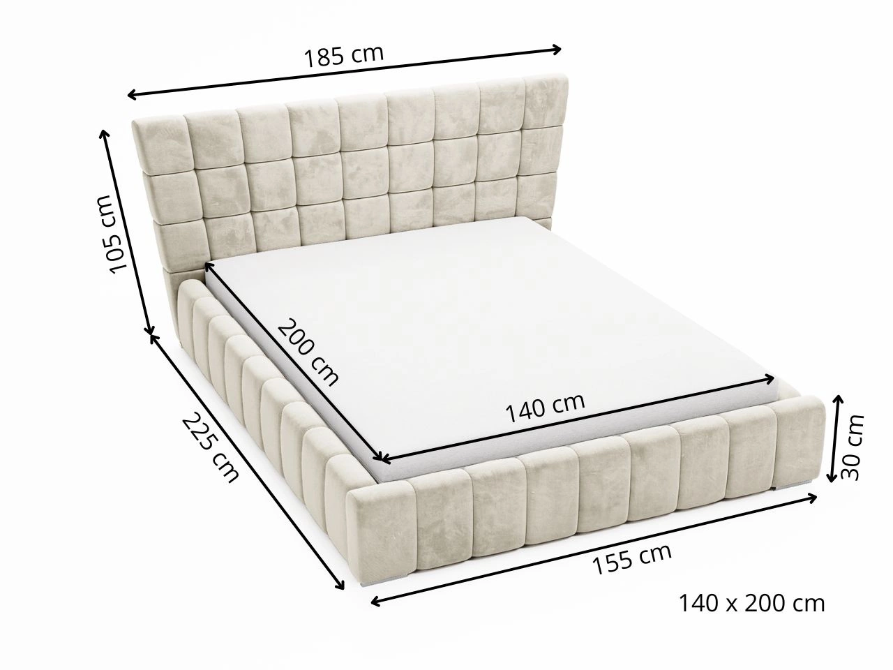 Dobierasz do: Łóżko tapicerowane z pojemnikiem i stelażem 140x200 cm Paris Beżowy