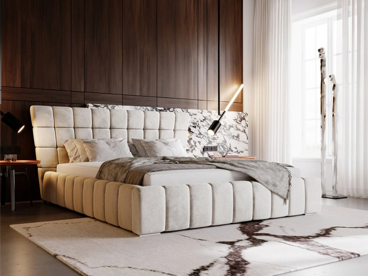 Łóżko Paris to nie tylko miejsce do odpoczynku, ale również centralny punkt eleganckiej sypialni. Jego harmonijne połączenie luksusowej tkaniny, pikowanych detali oraz wysokiej jakości materiałów sprawia, że wnętrze nabiera wyjątkowego, ekskluzywnego charakteru. Jest to idealna propozycja dla osób, które pragną połączyć komfort, nowoczesność i elegancję w jednym meblu.