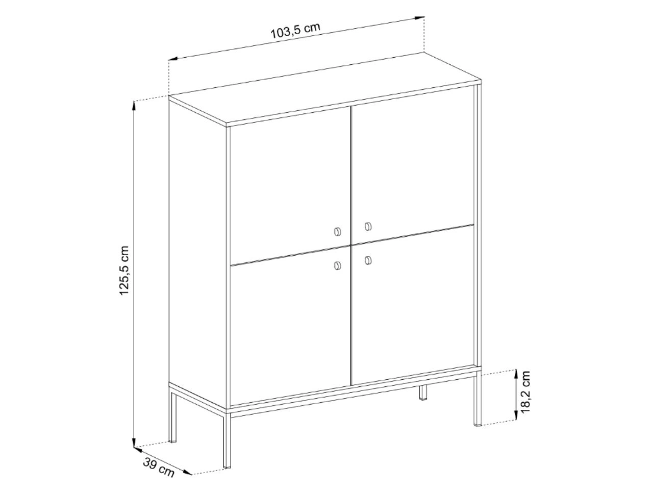 - Metalowe nóżki o wysokości 18,2 cm i grubości 18x18 mm w kolorze czarnym,