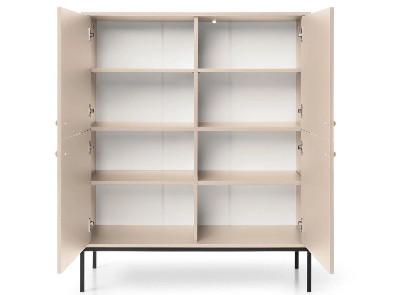 - 8 półek, zamykane drzwiczkami z metalowymi uchwytami, ułatwiające organizację przestrzeni,