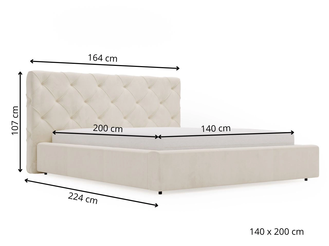 - Powierzchnia spania: 140 × 200 cm