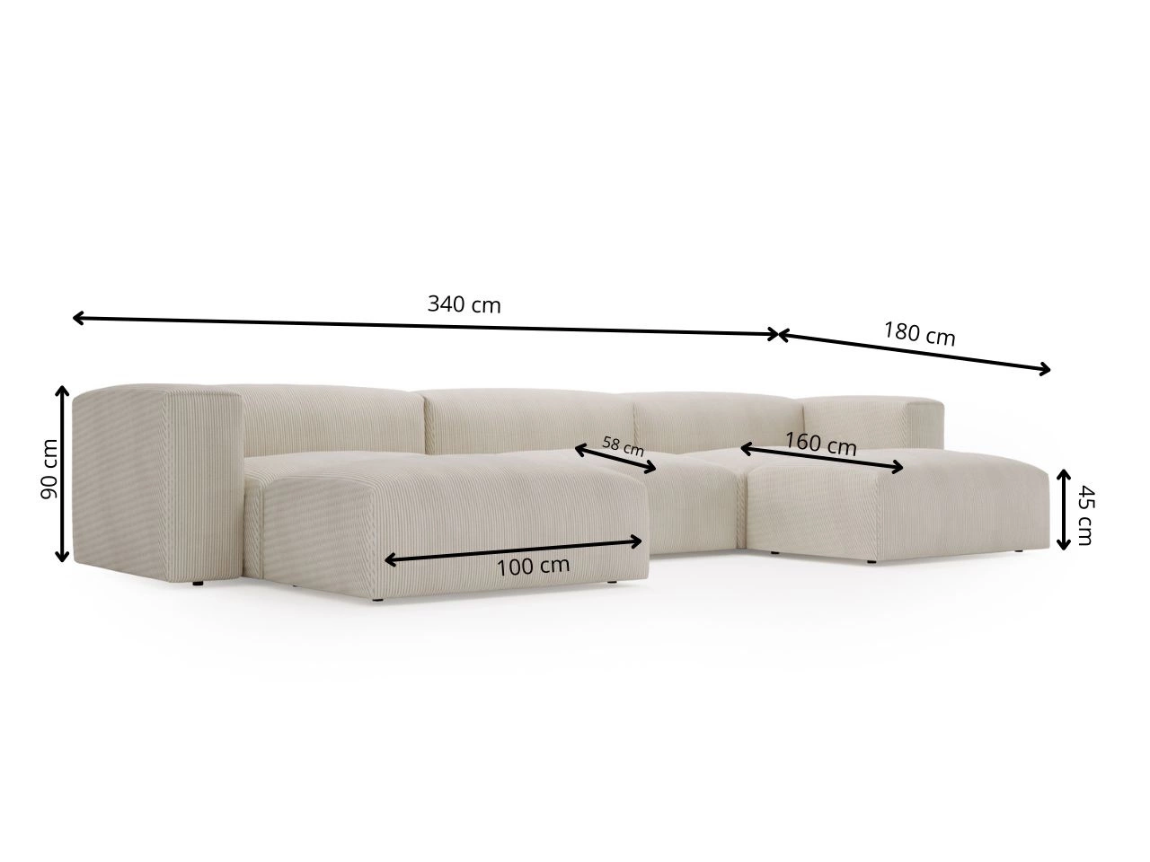 Narożnik sztruksowy Landi U to idealne połączenie nowoczesnego designu, funkcjonalności i komfortu. Jego zaokrąglone, eleganckie kształty nadają wnętrzu wyjątkowy styl i tworzą przytulną atmosferę.