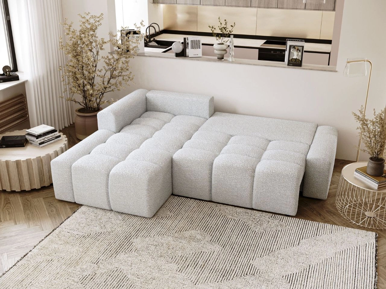 Dobierasz do: Narożnik L lewy z funkcją spania i pojemnikiem Lana Biały