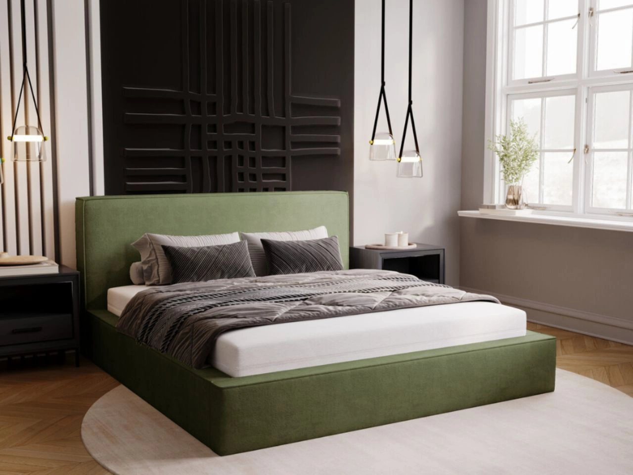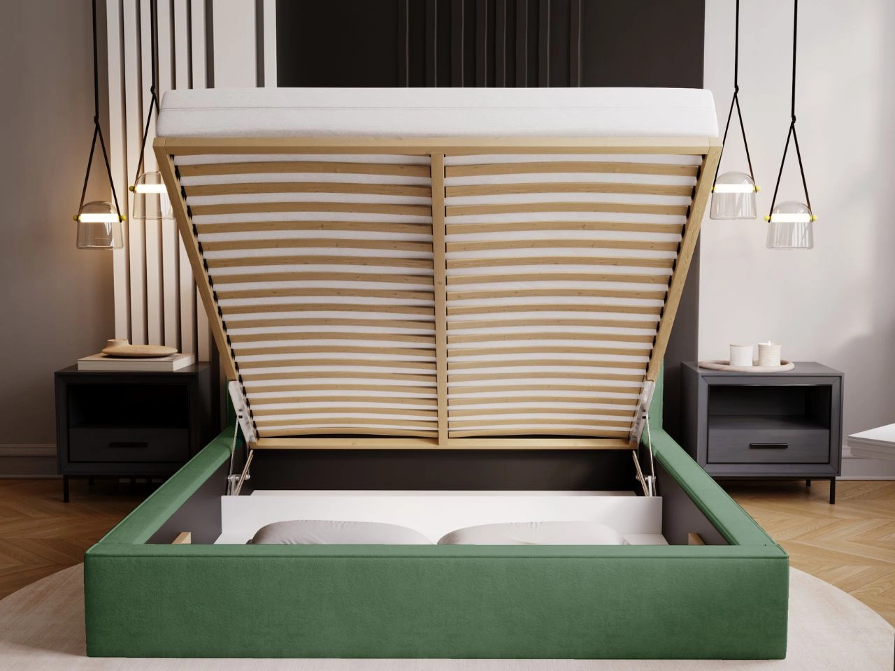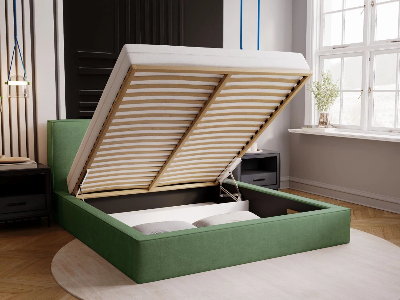 Łóżko tapicerowane z pojemnikiem i stelażem 200x200 Monaco Zielone
