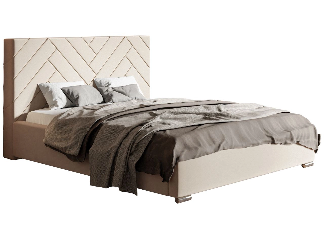 Tapicerowane łóżko dwuosobowe Toreto to elegancki i minimalistyczny model, który zapewnia wysoki komfort oraz ergonomiczne rozwiązania. Mebel wyposażony jest w wysokie wezgłowie ozdobione interesującymi przeszyciami. Wezgłowie pełni nie tylko funkcję dekoracyjną, ale także umożliwia wygodne oparcie pleców, na przykład podczas wieczornego czytania lub oglądania telewizji.