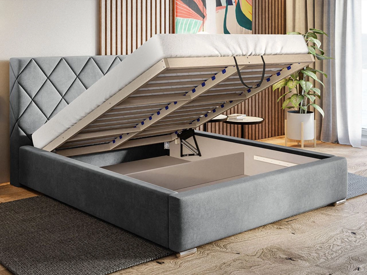 Łóżko tapicerowane z pojemnikiem i stelażem 120x200 Taranto Szare