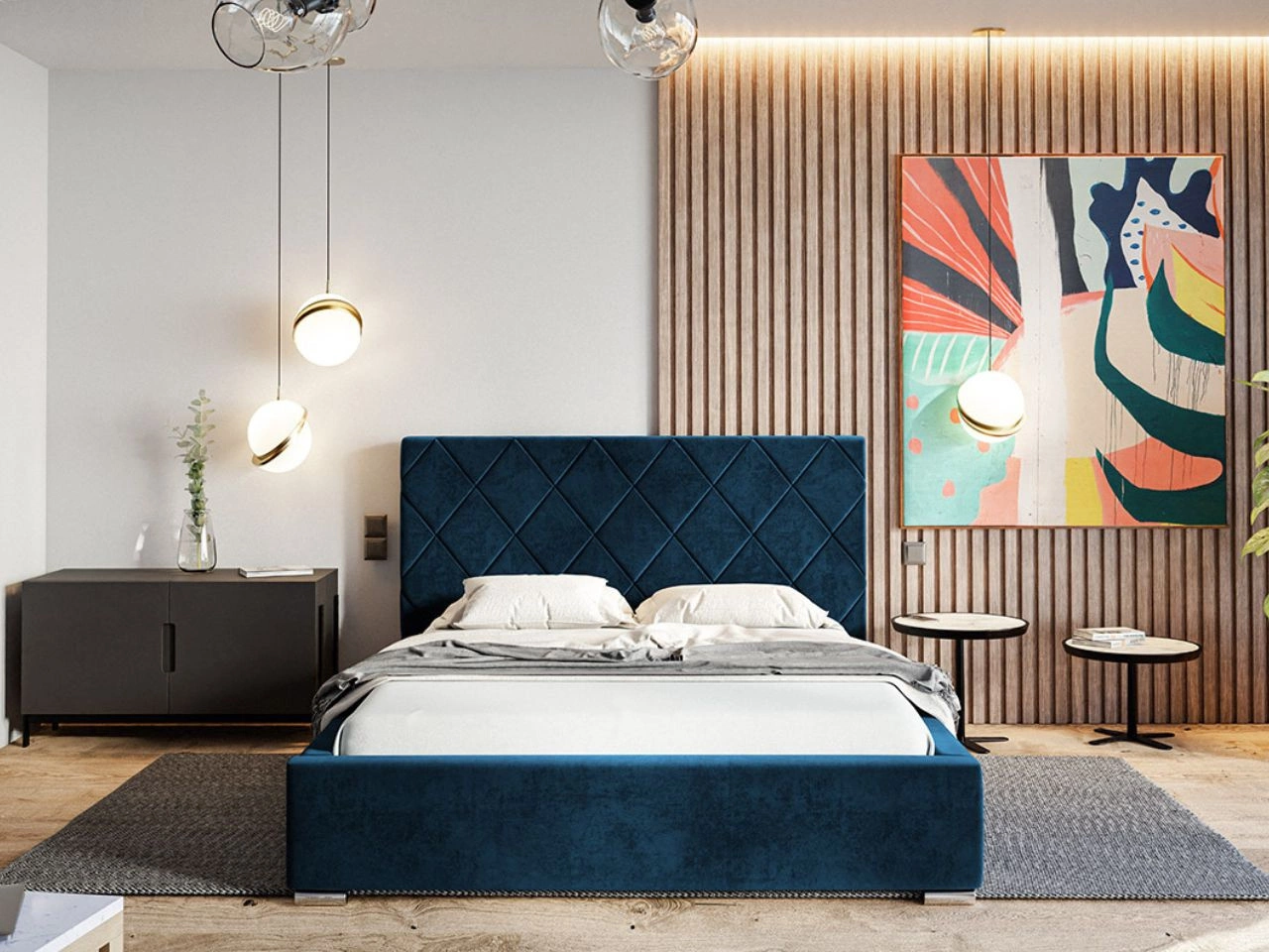 Łóżko tapicerowane z pojemnikiem i stelażem 180x200 Taranto Ciemnoniebieskie