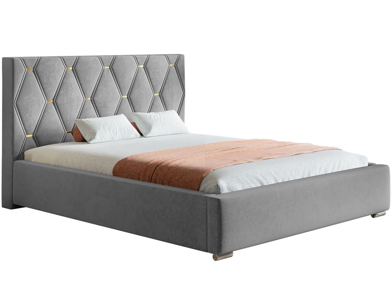 Łóżko tapicerowane z pojemnikiem i stelażem 180x200 Tasso Szare