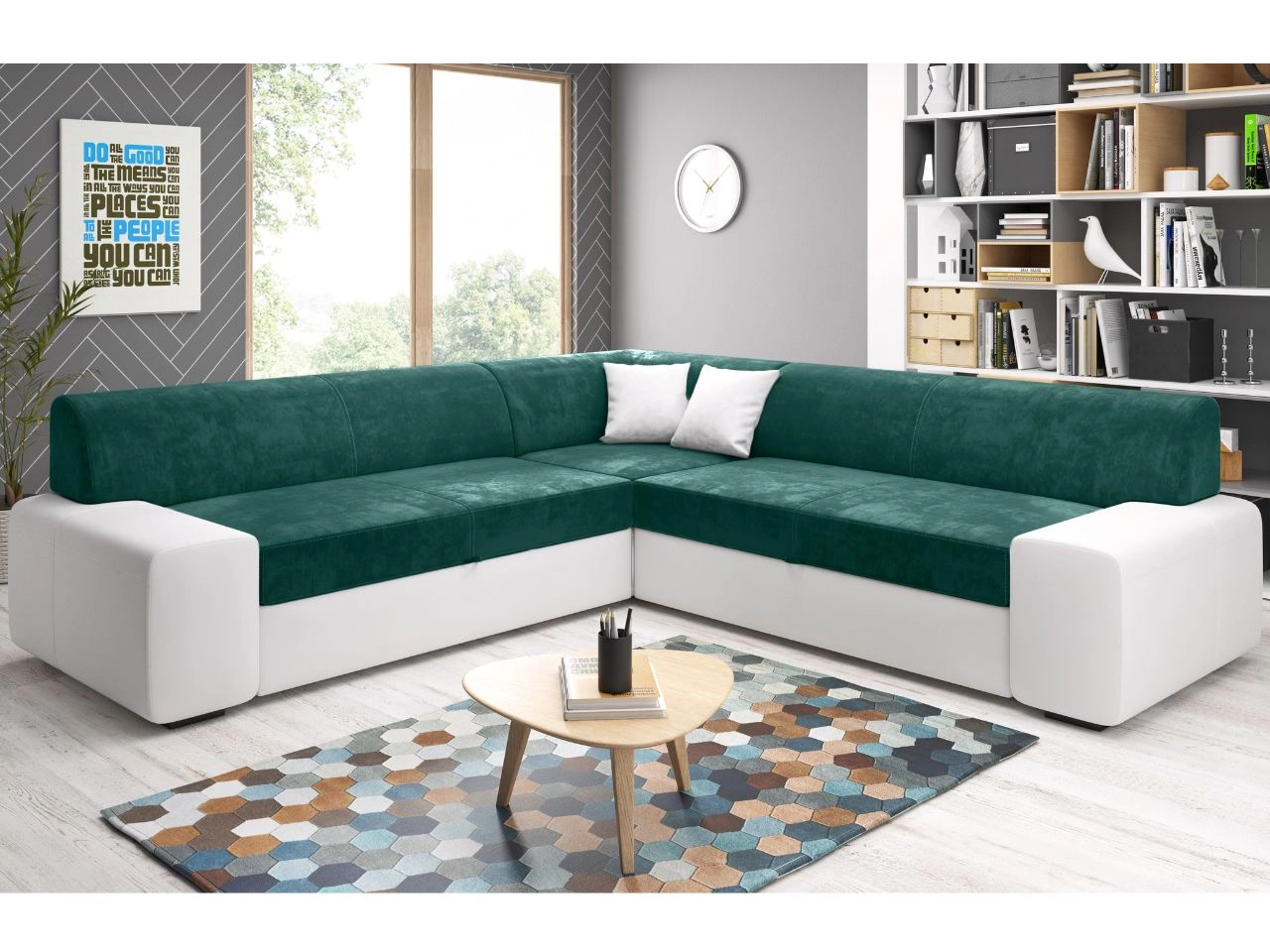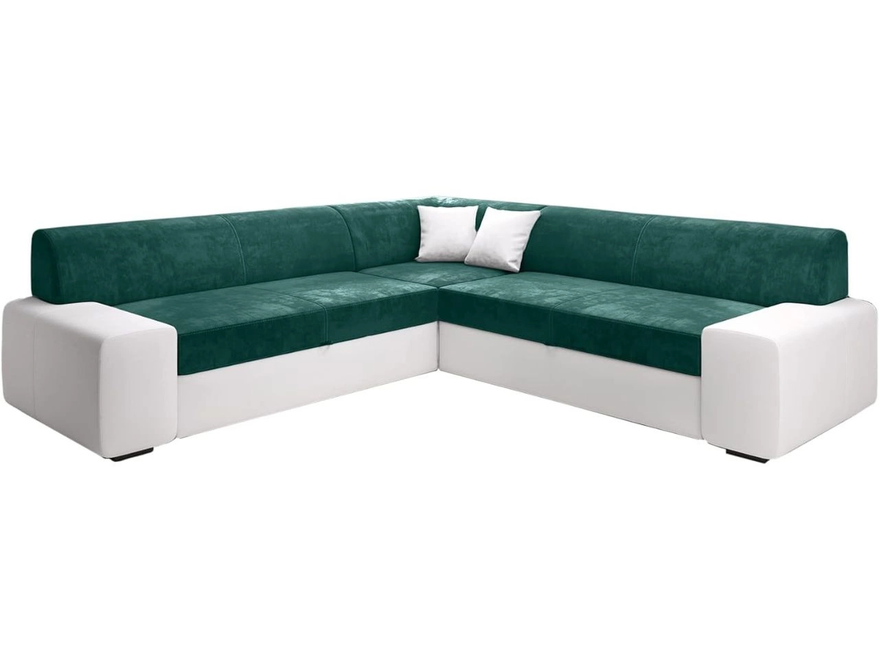 Narożnik L Prawy z funkcją spania i pojemnikiem Fresto Maxi Ciemny zielony, Biały