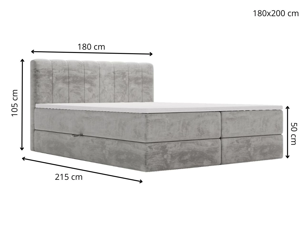 Łóżko kontynentalne z pojemnikami na pościel 180x200 Forte Jasnoszare