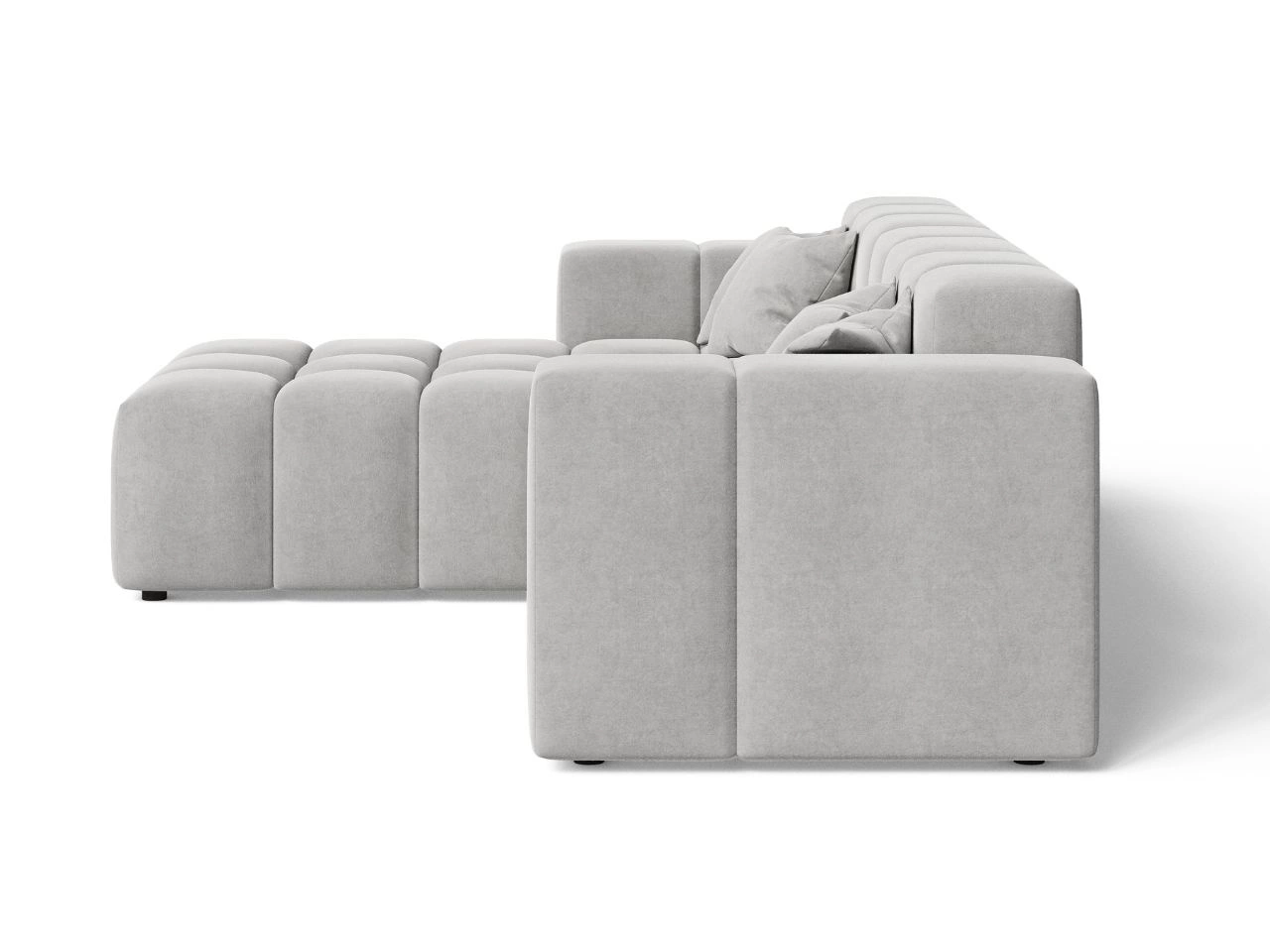Siedzisko i oparcie wypełnione są wysokiej jakości pianką, co zapewnia wyjątkową wygodę oraz odporność na odkształcenia, dzięki czemu narożnik zachowa swój pierwotny kształt i właściwości przez wiele lat. Dzięki wolnostojącej konstrukcji narożnik tapicerowany Loopo daje dużą swobodę aranżacyjną i może zostać ustawiony w dowolnym miejscu w pomieszczeniu. Łączy w sobie komfort i elegancję, prezentując się atrakcyjnie zarówno z przodu, jak i z tyłu.