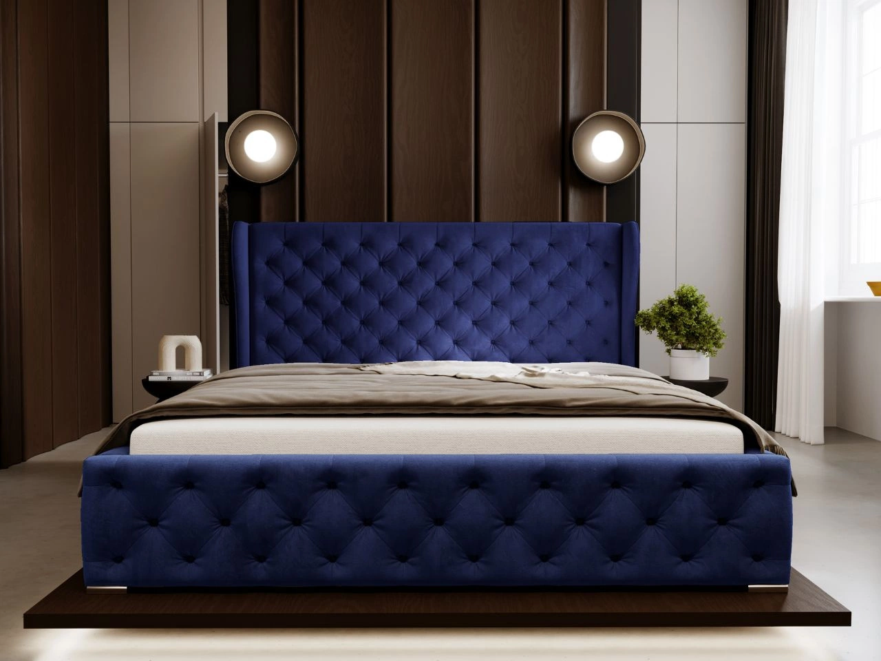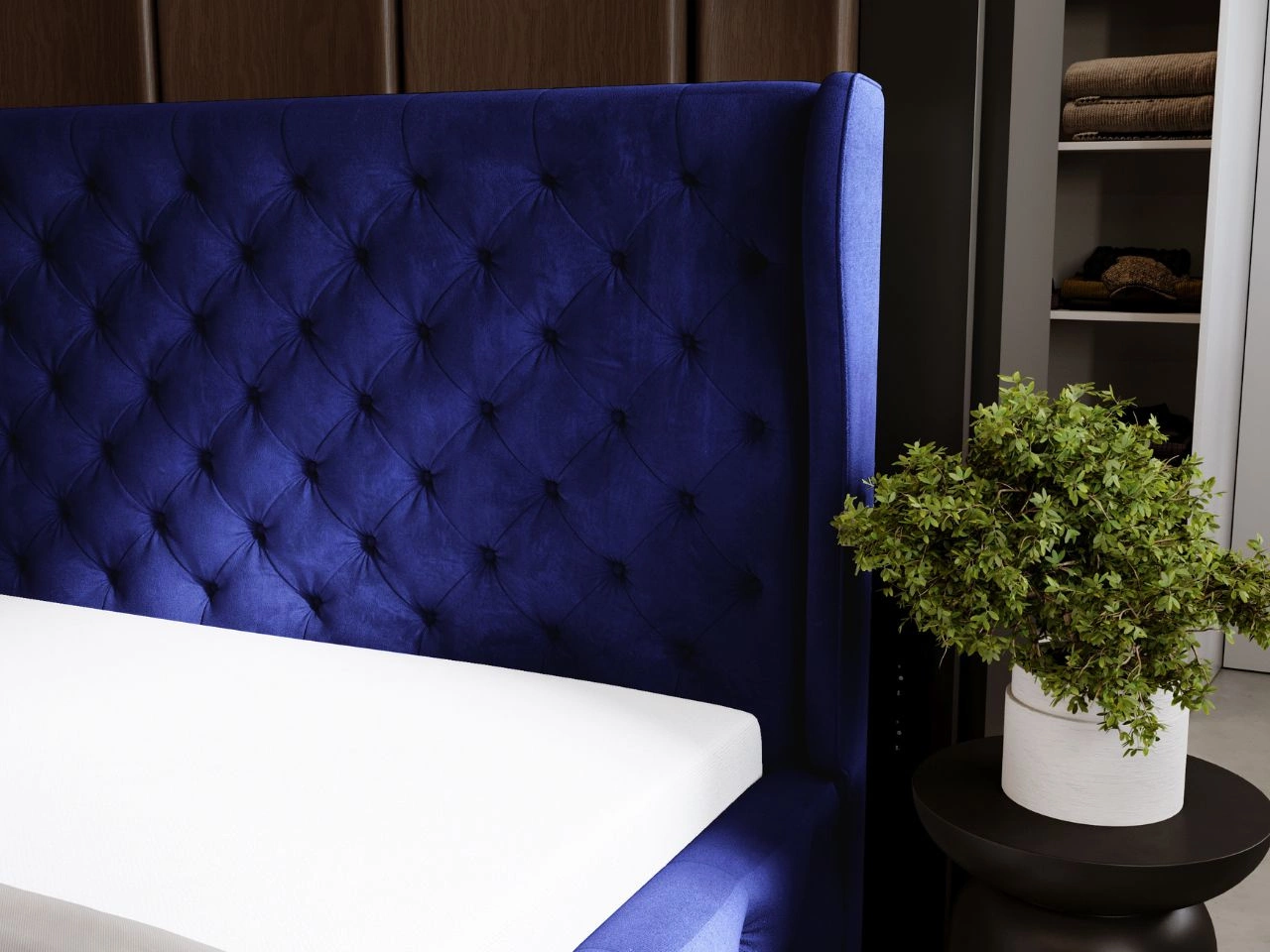 Łóżko tapicerowane z pojemnikiem na pościel i stelażem 140x200 Kingston Ciemnoniebieskie