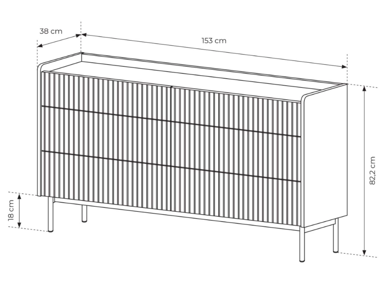 Komoda Abios to doskonałe połączenie funkcjonalności i estetyki, które nada Twojemu wnętrzu wyjątkowy charakter. Jej nowoczesny design w subtelny sposób łączy elegancję z praktycznymi rozwiązaniami, czyniąc ją centralnym punktem salonu.
