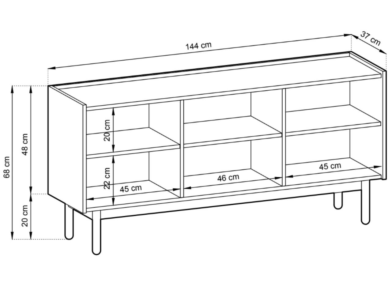 - Komoda niska: szerokość: 144 cm, wysokość: 68 cm, głębokość: 37 cm
