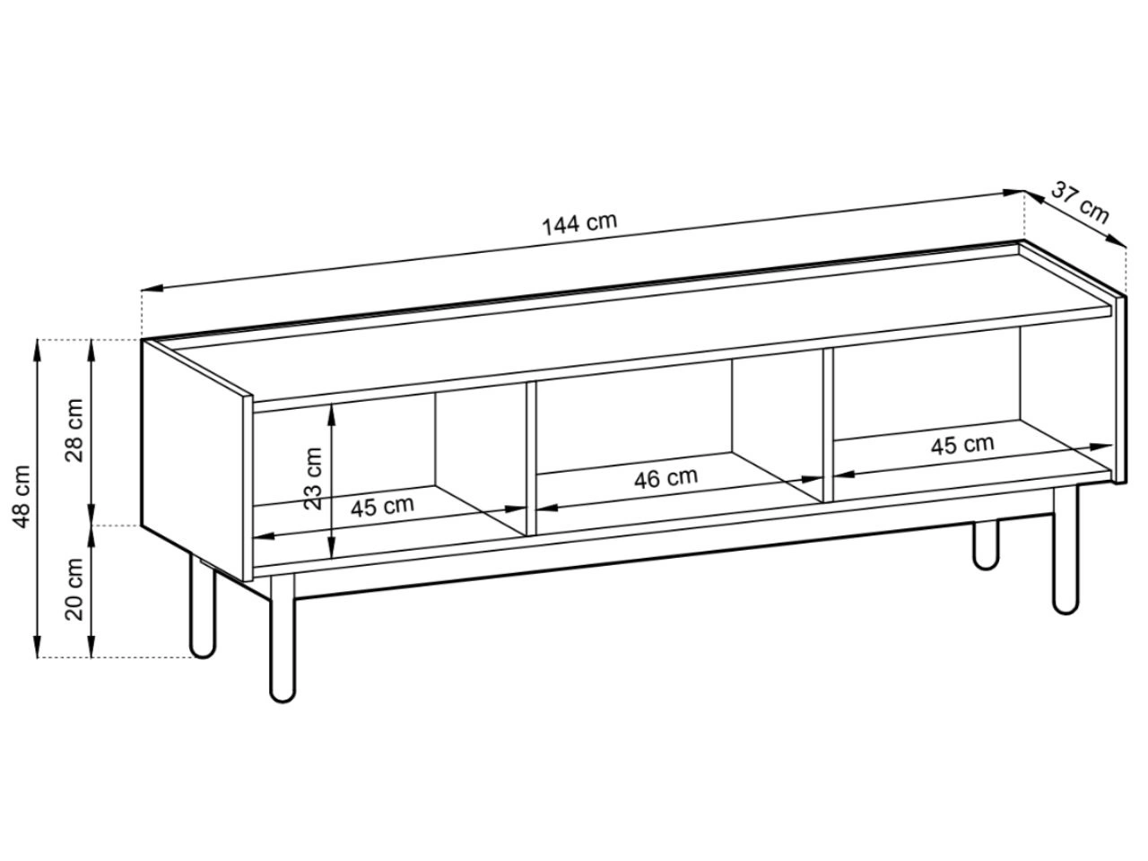 - Szafka RTV: szerokość: 144 cm, wysokość: 48 cm, głębokość: 37 cm