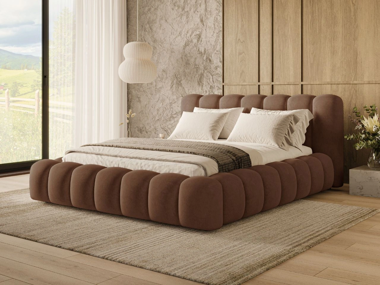 Charakterystyczną cechą łóżka Averia jest jego imponujące wezgłowie. Gruba warstwa pianki, którą pokryto konstrukcję, nadaje łóżku unikalny kształt, który doskonale harmonizuje z eleganckimi i nowoczesnymi aranżacjami wnętrz.