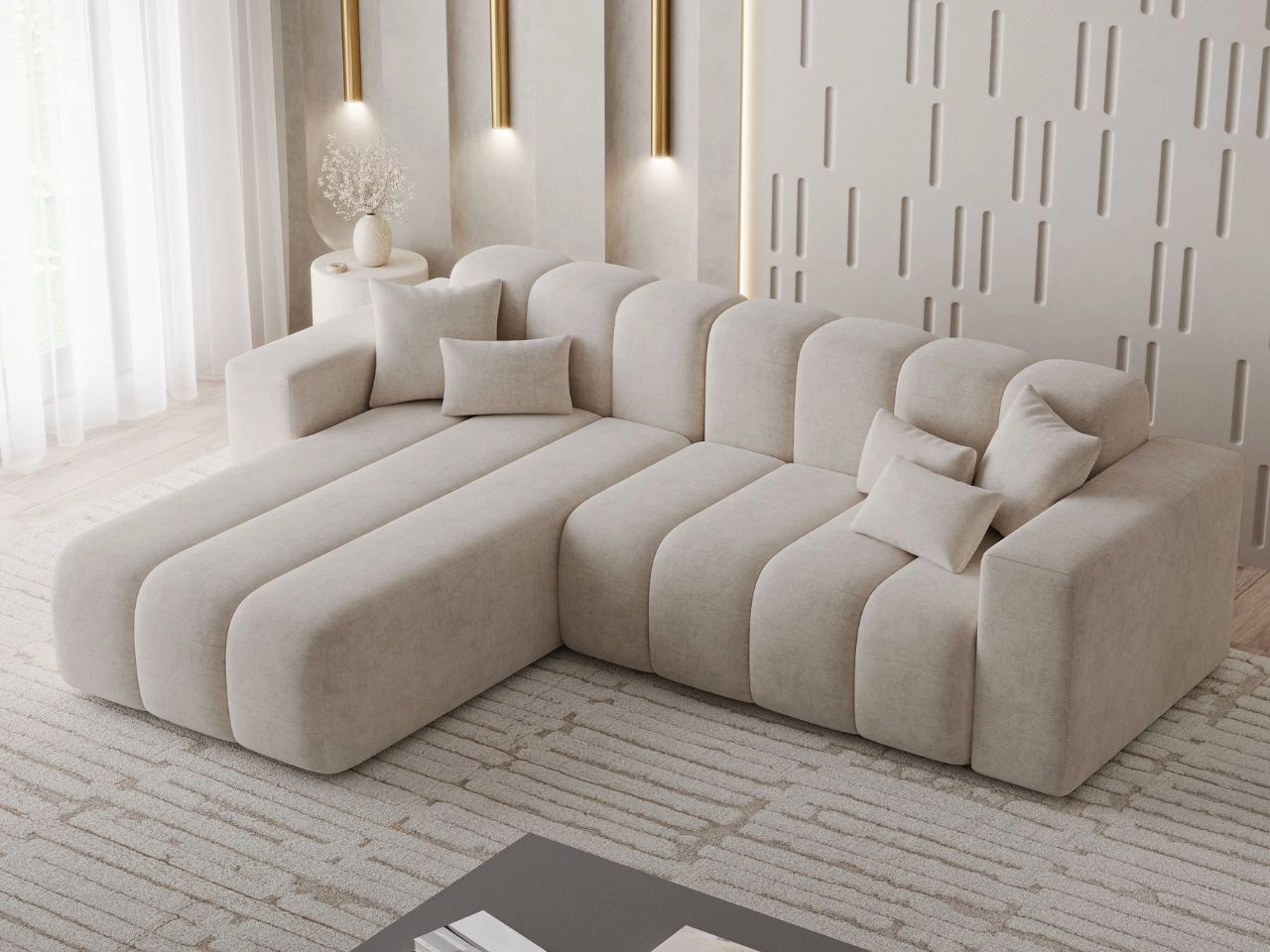 Wyposażony w zintegrowane sprężyny faliste, narożnik zapewnia doskonałą elastyczność i trwałość. Siedziska idealnie dopasowują się do kształtu ciała, oferując maksymalny komfort. Wysokiej jakości pianka wypełniająca gwarantuje wygodę oraz odporność na odkształcenia, dzięki czemu mebel zachowuje swoją formę przez długie lata.