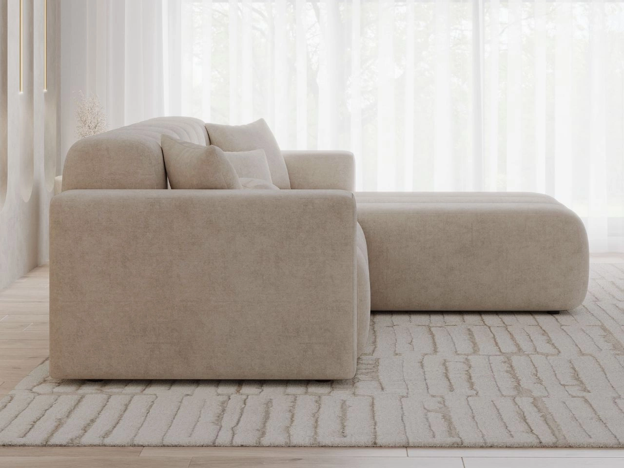 Wyposażony w zintegrowane sprężyny faliste, narożnik zapewnia doskonałą elastyczność i trwałość. Siedziska idealnie dopasowują się do kształtu ciała, oferując maksymalny komfort. Wysokiej jakości pianka wypełniająca gwarantuje wygodę oraz odporność na odkształcenia, dzięki czemu mebel zachowuje swoją formę przez długie lata.