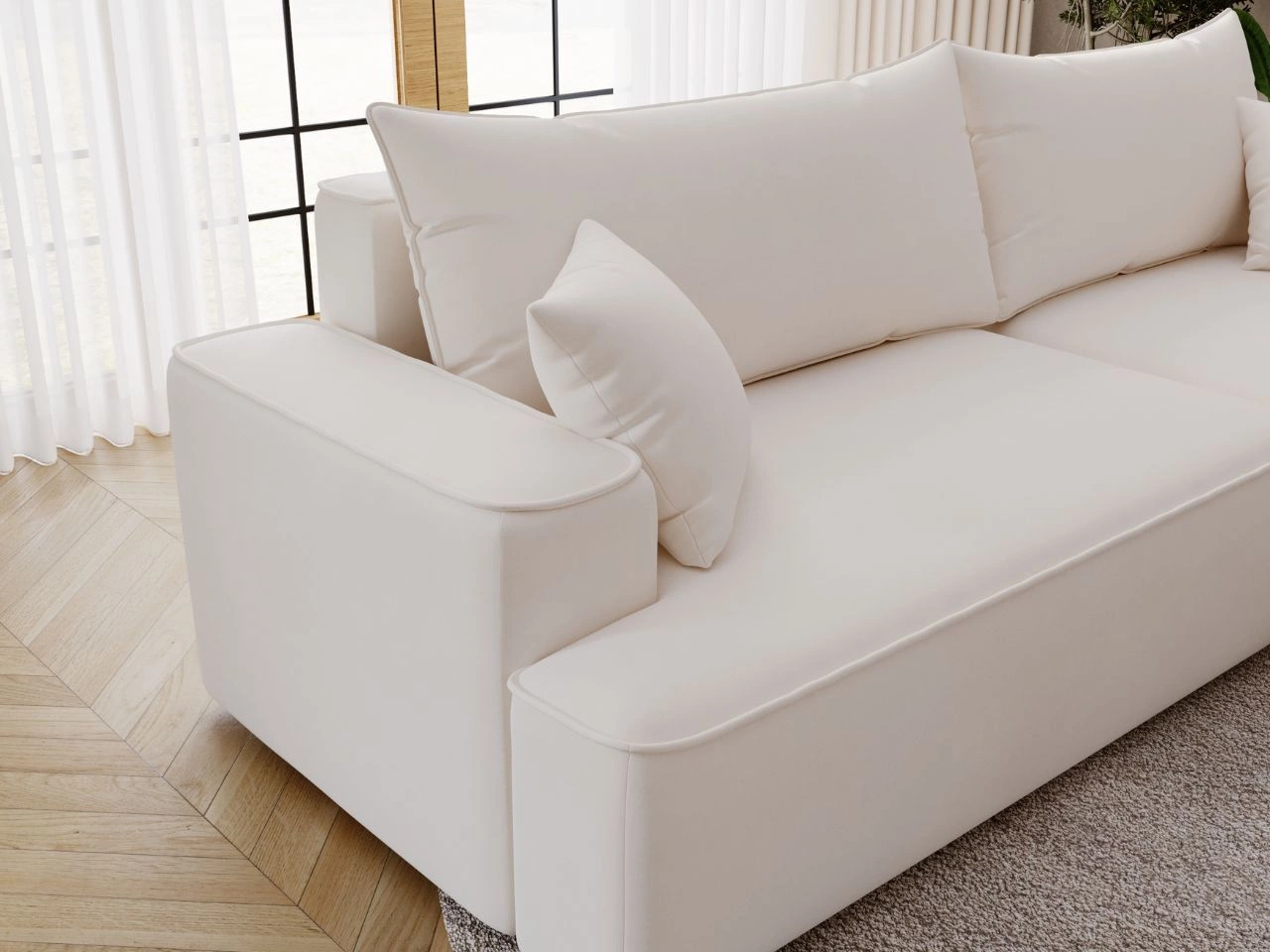 Narożnik California to idealne rozwiązanie dla osób poszukujących połączenia nowoczesnego stylu, funkcjonalności i komfortu. Mebel wyróżnia się minimalistycznym designem, który tworzy harmonijną atmosferę w salonie i nadaje wnętrzu przytulności oraz wyjątkowego charakteru.