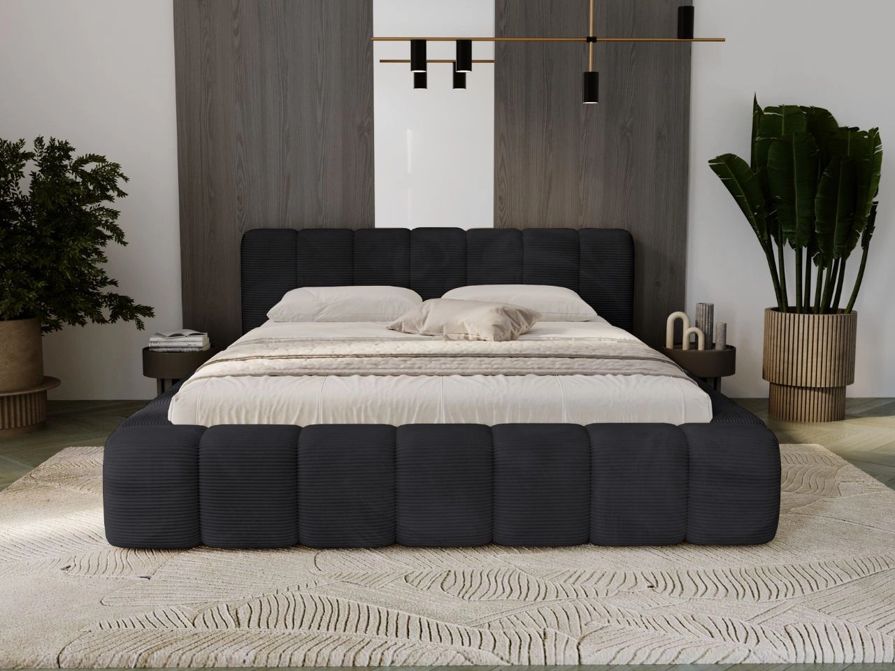 Łóżko tapicerowane z pojemnikiem na pościel 140x200 Ibiza Czarne