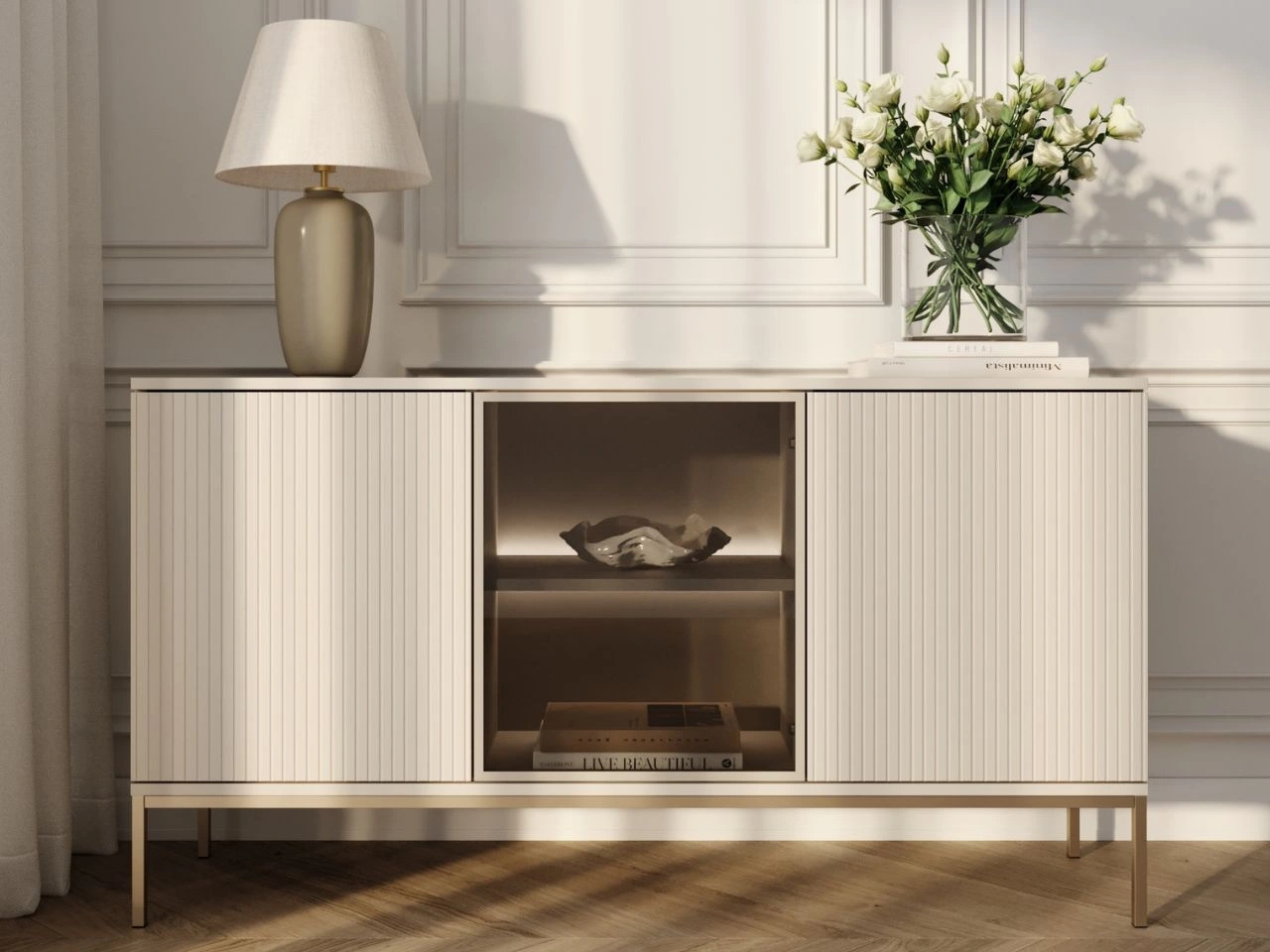 Komoda z drzwiami i oświetleniem LED Deo Kaszmirowa