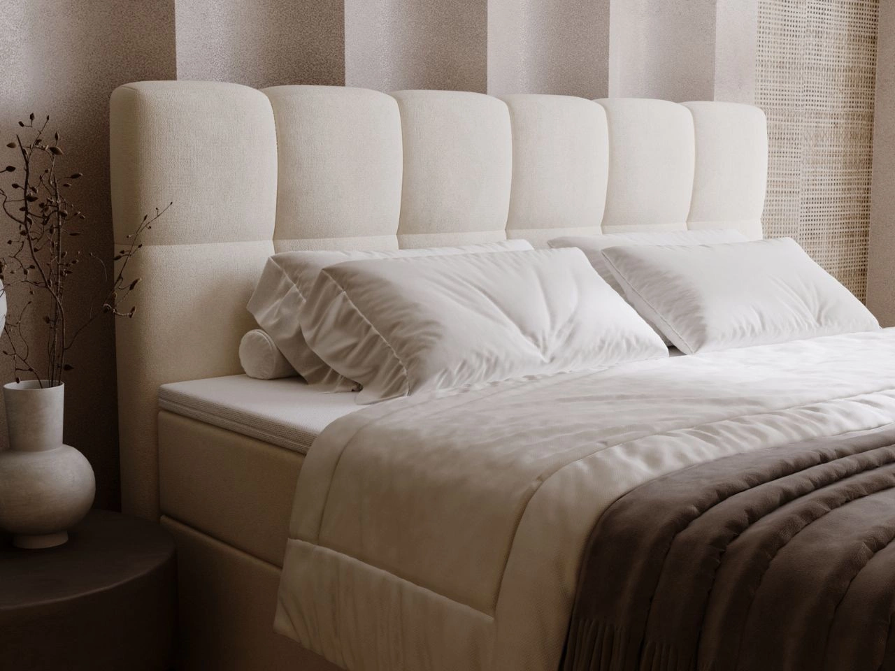 Łóżko kontynentalne z pojemnikiem na pościel 160x200 Maison Beżowe