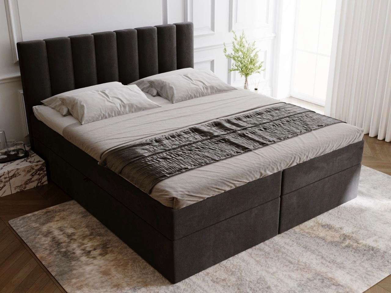 Łóżko kontynentalne z pojemnikiem na pościel 200x200 Mocca Czarne