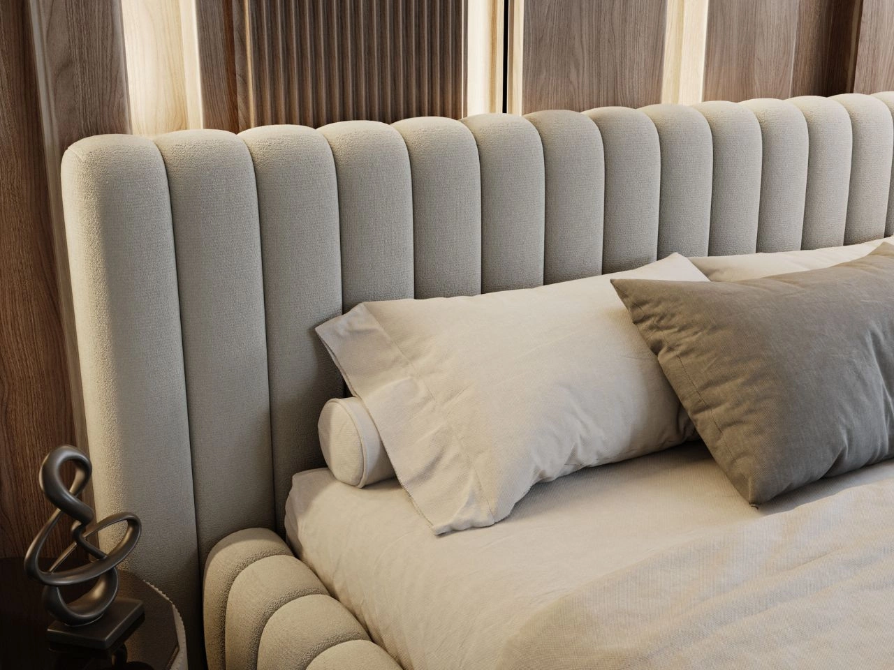 Łóżko tapicerowane Bliss to stylowe połączenie elegancji i funkcjonalności, które doskonale odnajdzie się w każdej sypialni – od nowoczesnych aranżacji, przez styl glamour, aż po klasyczne wnętrza. Jego charakterystycznym elementem jest efektowne wezgłowie, wykonane z miękkiej pianki i podzielone na symetryczne segmenty, które nadają całości wyjątkowego charakteru. Oprócz walorów wizualnych, wezgłowie pełni również funkcję praktyczną – zapewnia wygodne oparcie podczas wieczornego relaksu z książką lub przed telewizorem.