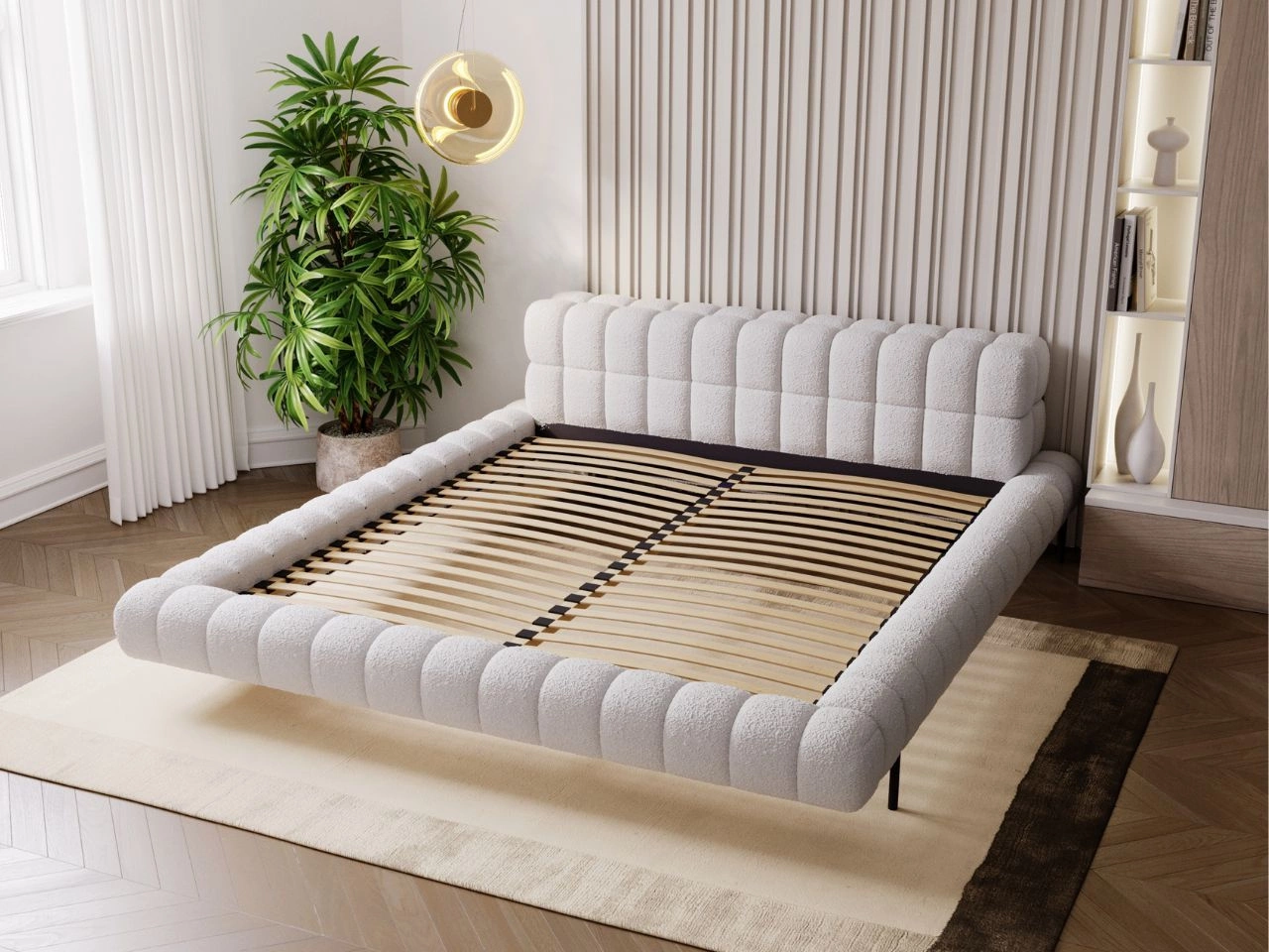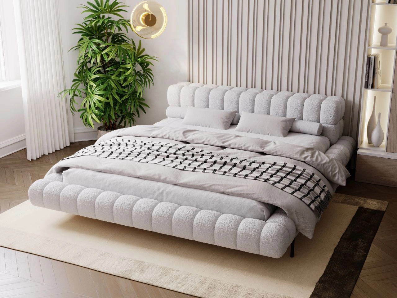 Łóżko tapicerowane Imagine pokryte zostało tkaniną Anthology – materiałem typu bouclé, który wykonany jest z przędzy pętelkowej, co oznacza, że powierzchnia pokryta jest nieregularną siecią supełków i pętelek. Tkanina ta jest bardzo miękka i przyjemna w dotyku, a przy tym charakteryzuje się wysoką odpornością na mechacenie i ścieranie. Ponadto nie poddaje się wybarwieniom spowodowanym działaniem światła słonecznego, dzięki czemu na bardzo długo zachowuje perfekcyjny kolor.