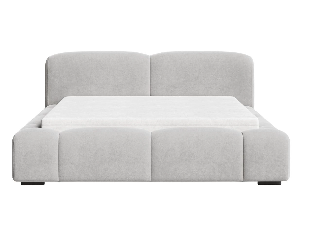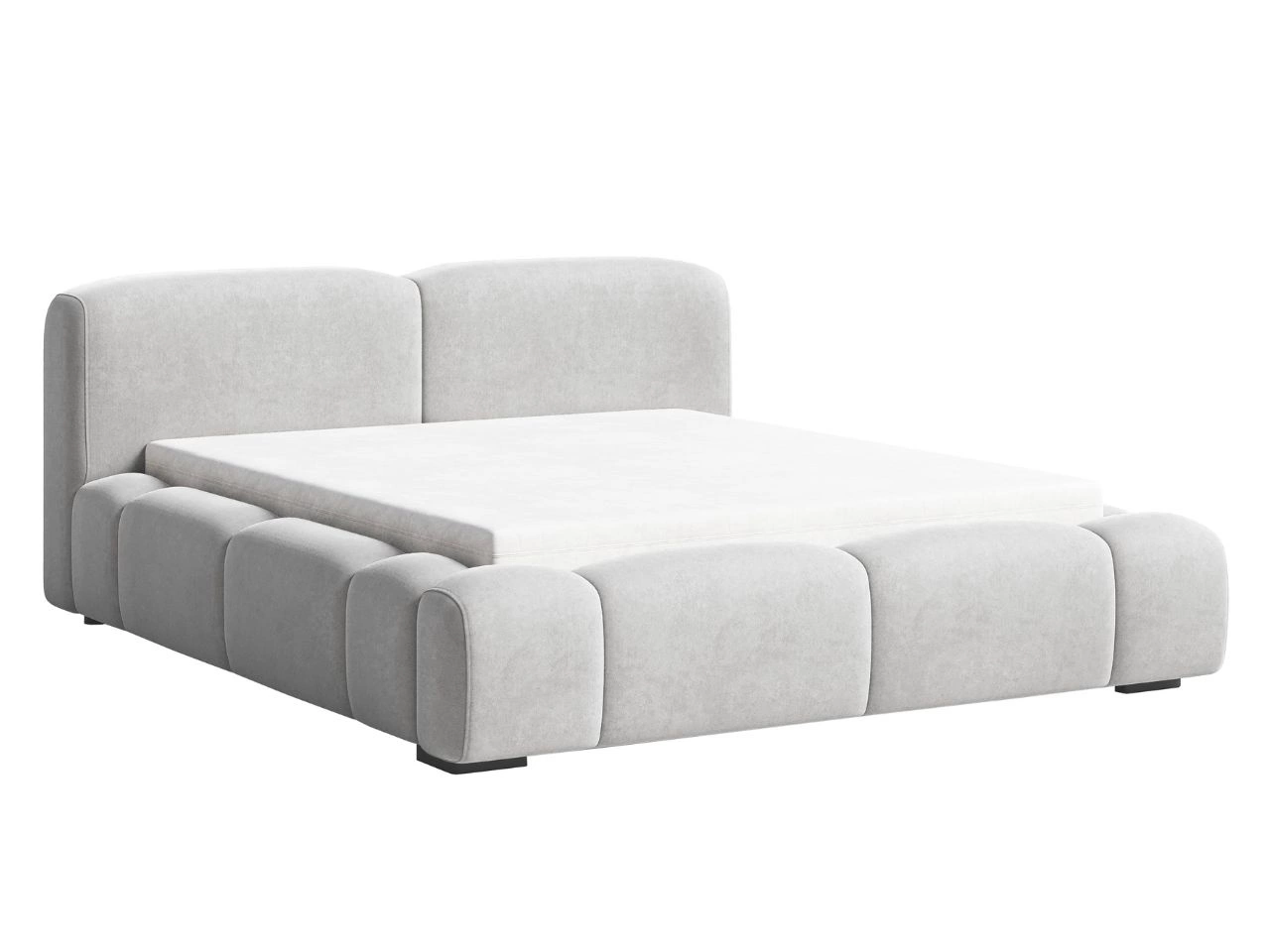 Łóżko tapicerowane Aubi to nowoczesny mebel o rzeźbiarskiej formie, który wyróżnia się lekko zaokrągloną bryłą i masywną podstawą. Jego miękkie boczne elementy i minimalistyczne, dwuczęściowe wezgłowie idealnie komponują się z eleganckimi, współczesnymi wnętrzami.