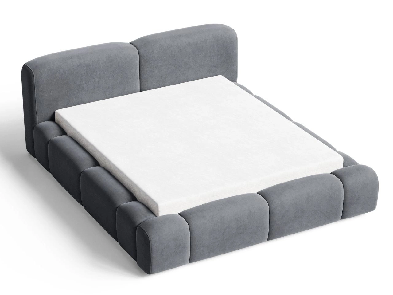 Łóżko tapicerowane Aubi to nowoczesny mebel o rzeźbiarskiej formie, który wyróżnia się lekko zaokrągloną bryłą i masywną podstawą. Jego miękkie boczne elementy i minimalistyczne, dwuczęściowe wezgłowie idealnie komponują się z eleganckimi, współczesnymi wnętrzami.
