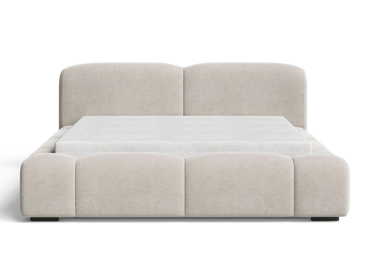 Łóżko tapicerowane Aubi to nowoczesny mebel o rzeźbiarskiej formie, który wyróżnia się lekko zaokrągloną bryłą i masywną podstawą. Jego miękkie boczne elementy i minimalistyczne, dwuczęściowe wezgłowie idealnie komponują się z eleganckimi, współczesnymi wnętrzami.