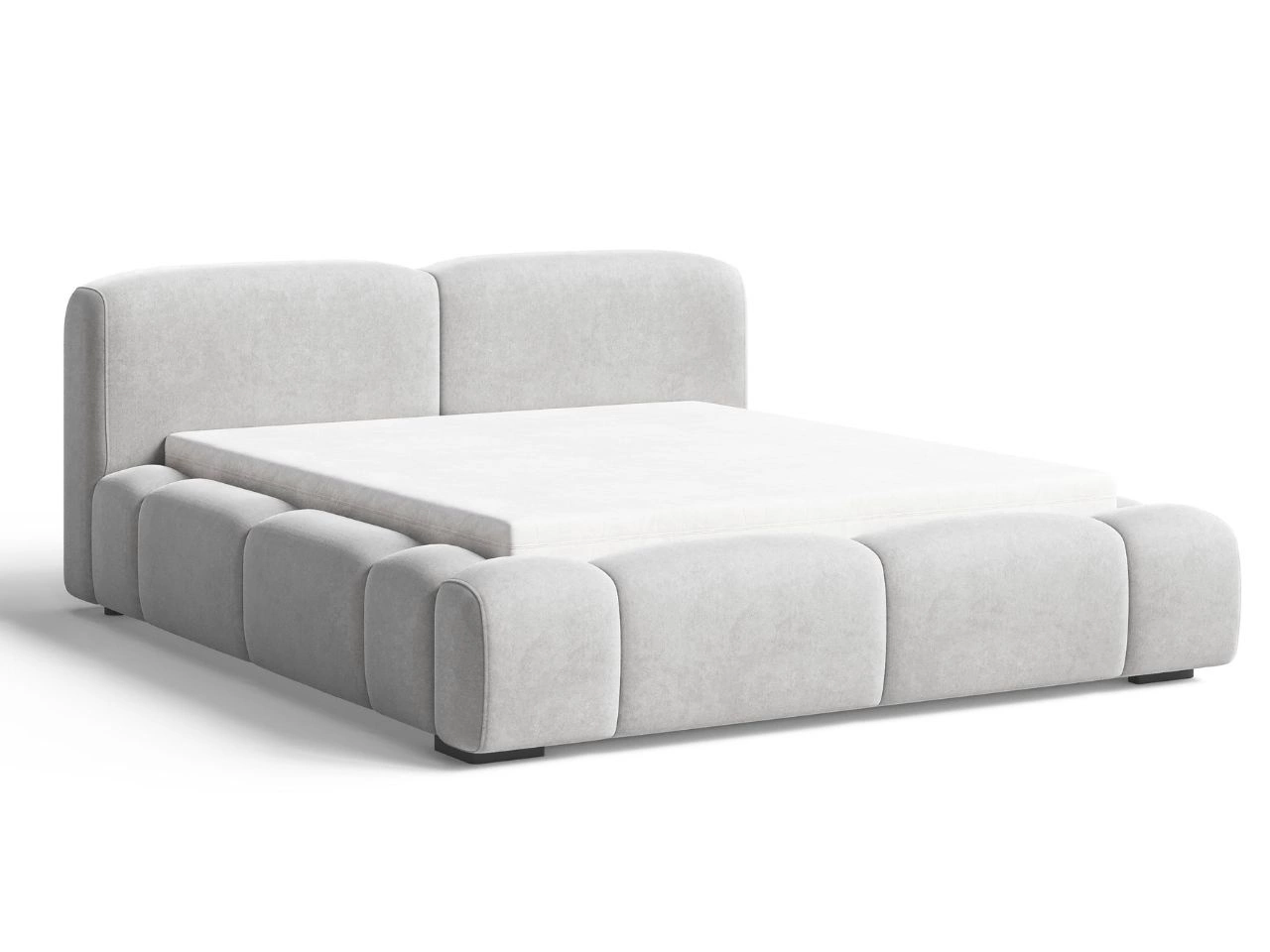 Łóżko tapicerowane Aubi to nowoczesny mebel o rzeźbiarskiej formie, który wyróżnia się lekko zaokrągloną bryłą i masywną podstawą. Jego miękkie boczne elementy i minimalistyczne, dwuczęściowe wezgłowie idealnie komponują się z eleganckimi, współczesnymi wnętrzami.