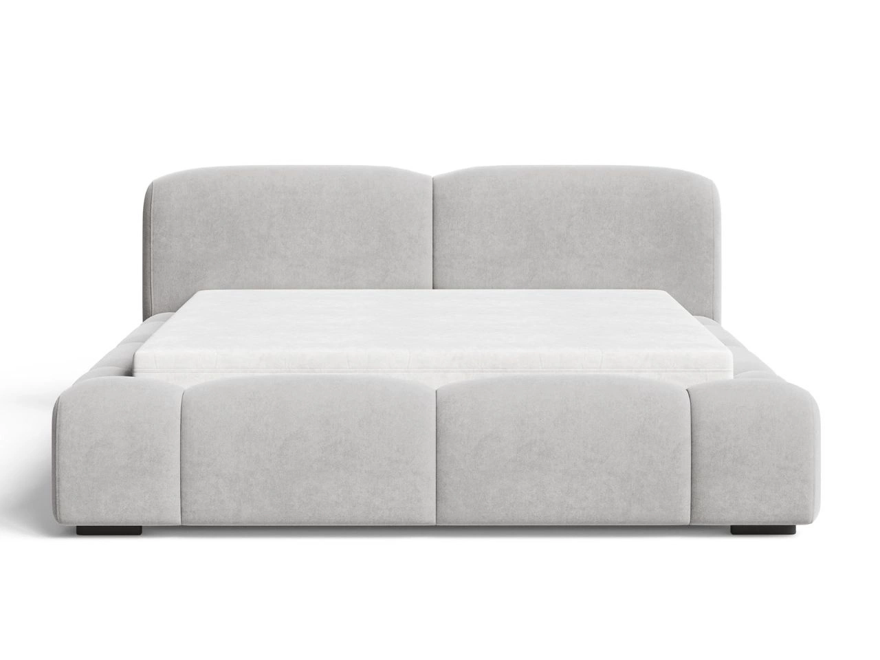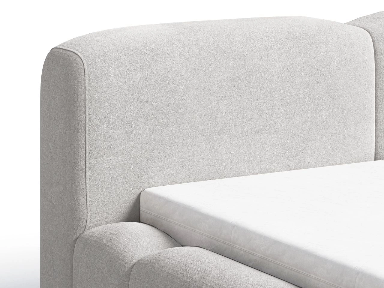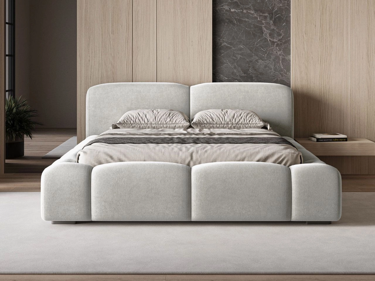 Łóżko tapicerowane Aubi to nowoczesny mebel o rzeźbiarskiej formie, który wyróżnia się lekko zaokrągloną bryłą i masywną podstawą. Jego miękkie boczne elementy i minimalistyczne, dwuczęściowe wezgłowie idealnie komponują się z eleganckimi, współczesnymi wnętrzami.
