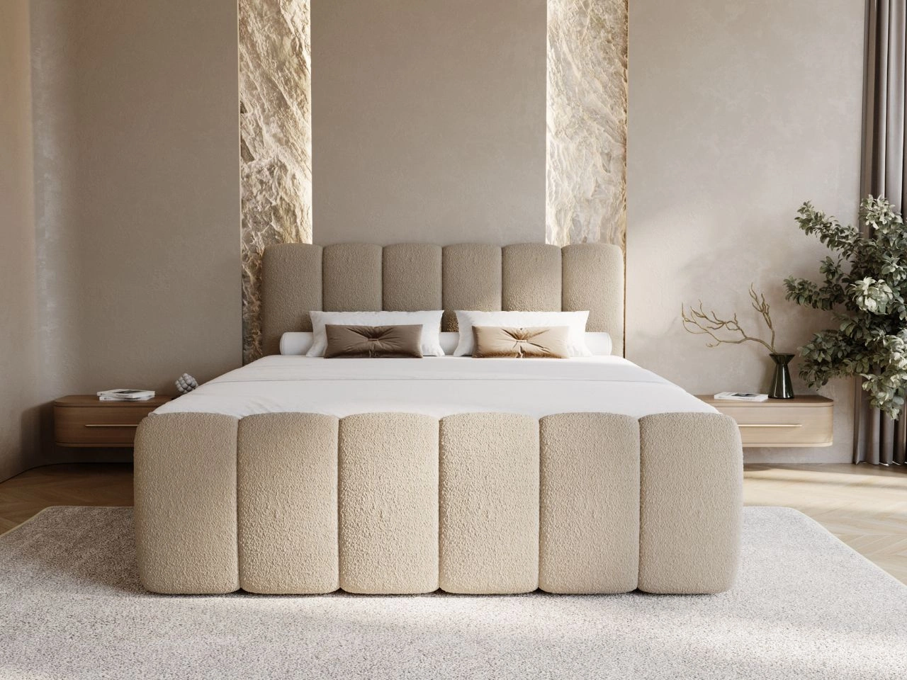 Łóżko kontynentalne z pojemnikiem na pościel 180x200 w tkaninie bouclé Cloud Brązowe