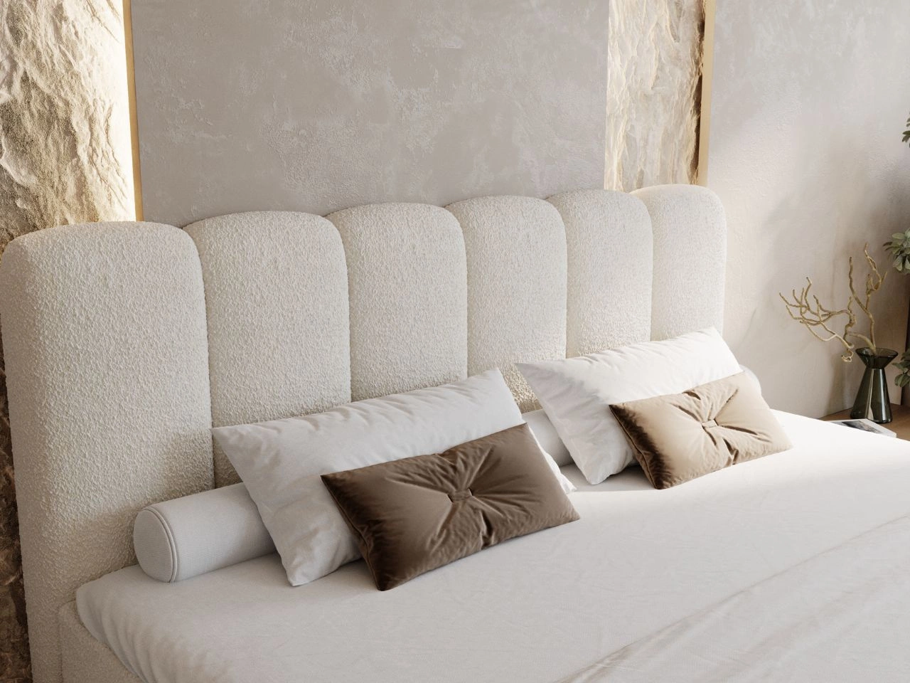 Łóżko kontynentalne z pojemnikiem na pościel 180x200 w tkaninie bouclé Cloud Beżowe