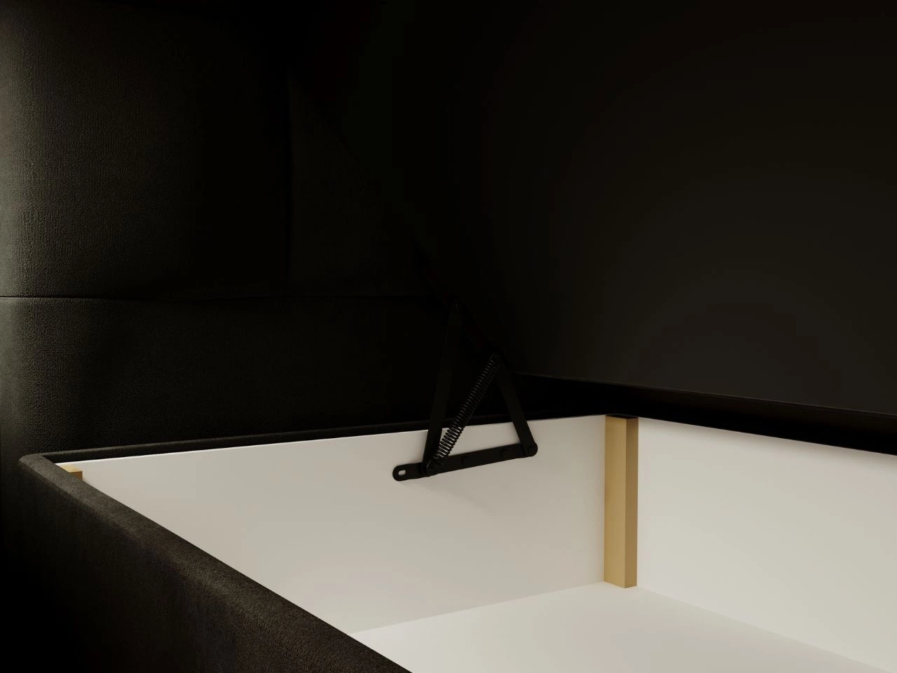 Praktyczny dwudzielny pojemnik na pościel pozwala na wygodne przechowywanie kołder, poduszek lub ubrań sezonowych. Sprężynowy mechanizm unoszenia ułatwia dostęp do schowka bez konieczności użycia siły.