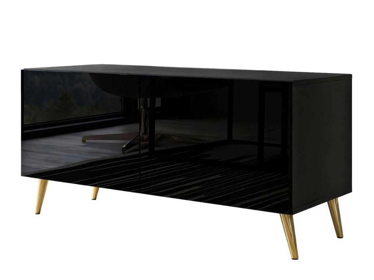 Szafka RTV pod telewizor z drzwiczkami na złotych nóżkach 100 cm Noaé Czarny połysk