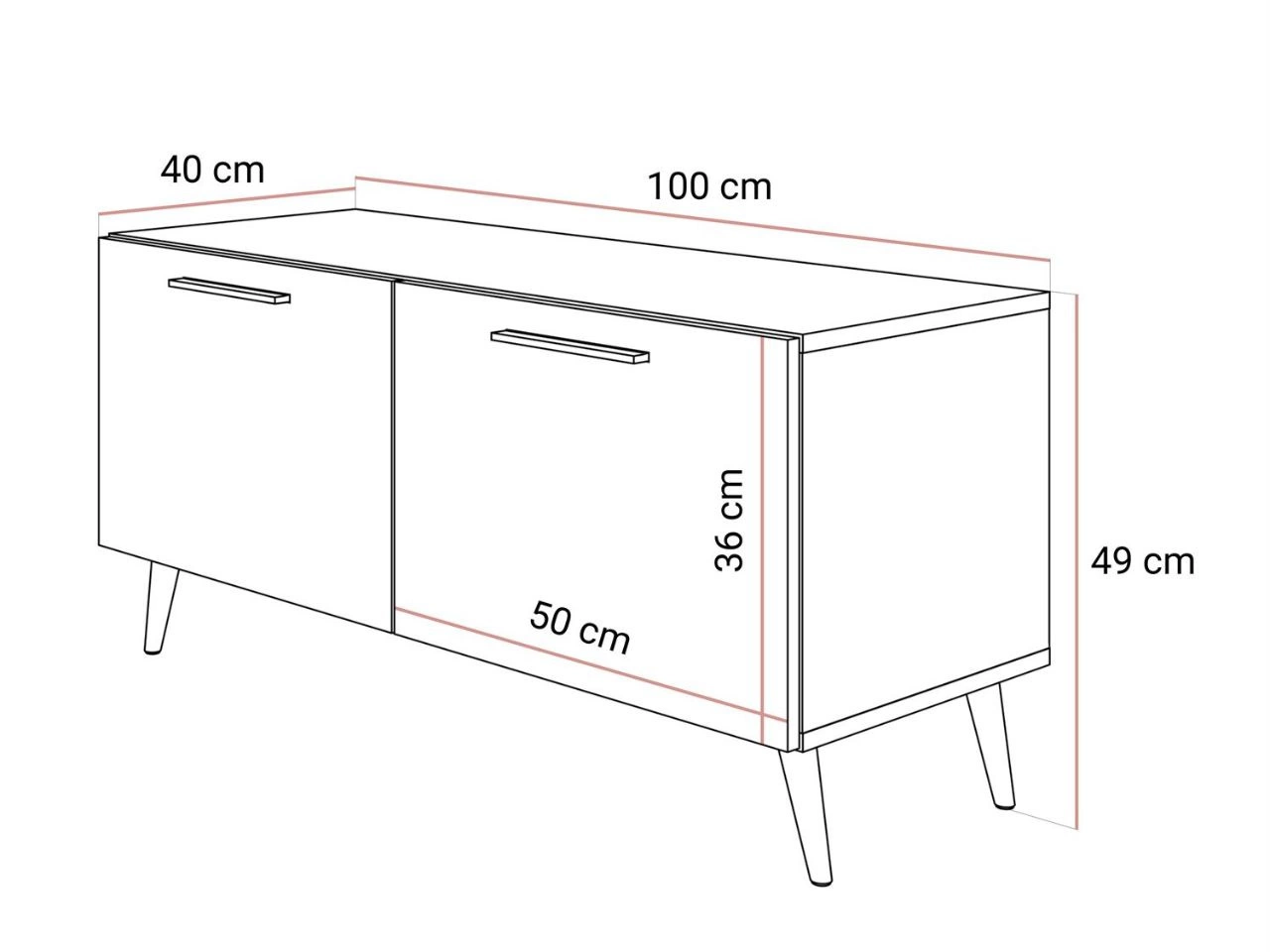 Korpus szafki telewizyjnej wykonano z wytrzymałej matowej płyty laminowanej o grubości 16 mm, co zapewnia trwałość i długie użytkowanie mebla. Jej szeroki blat to idealne miejsce na rodzinne pamiątki, dekoracje lub sprzęt RTV – pozwala na funkcjonalne i estetyczne zagospodarowanie przestrzeni.