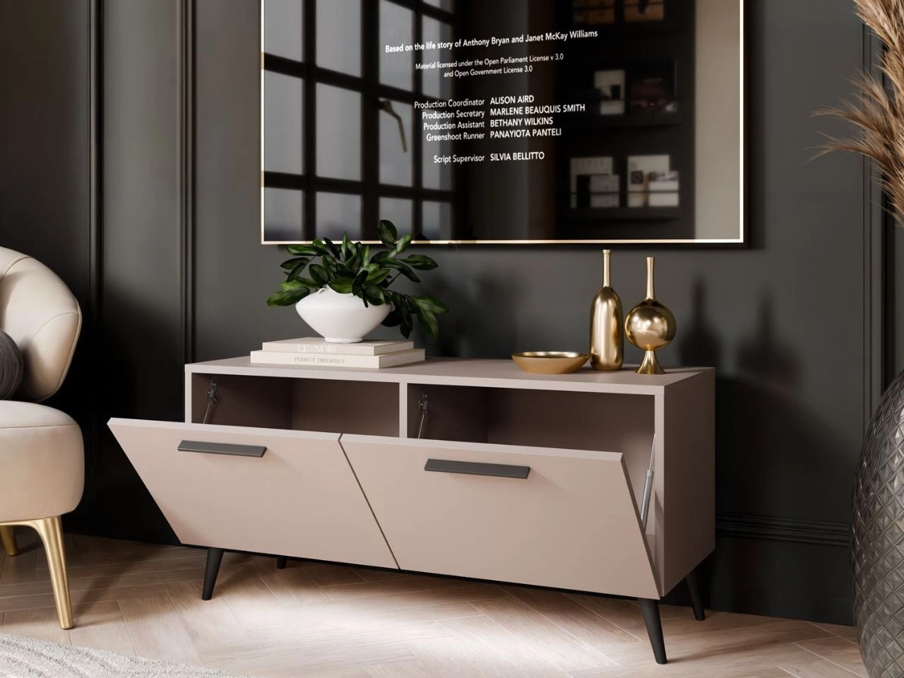 Szafka RTV pod telewizor z drzwiczkamii oświetleniem LED na czarnych nóżkach 100 cm Noaé Kaszmir