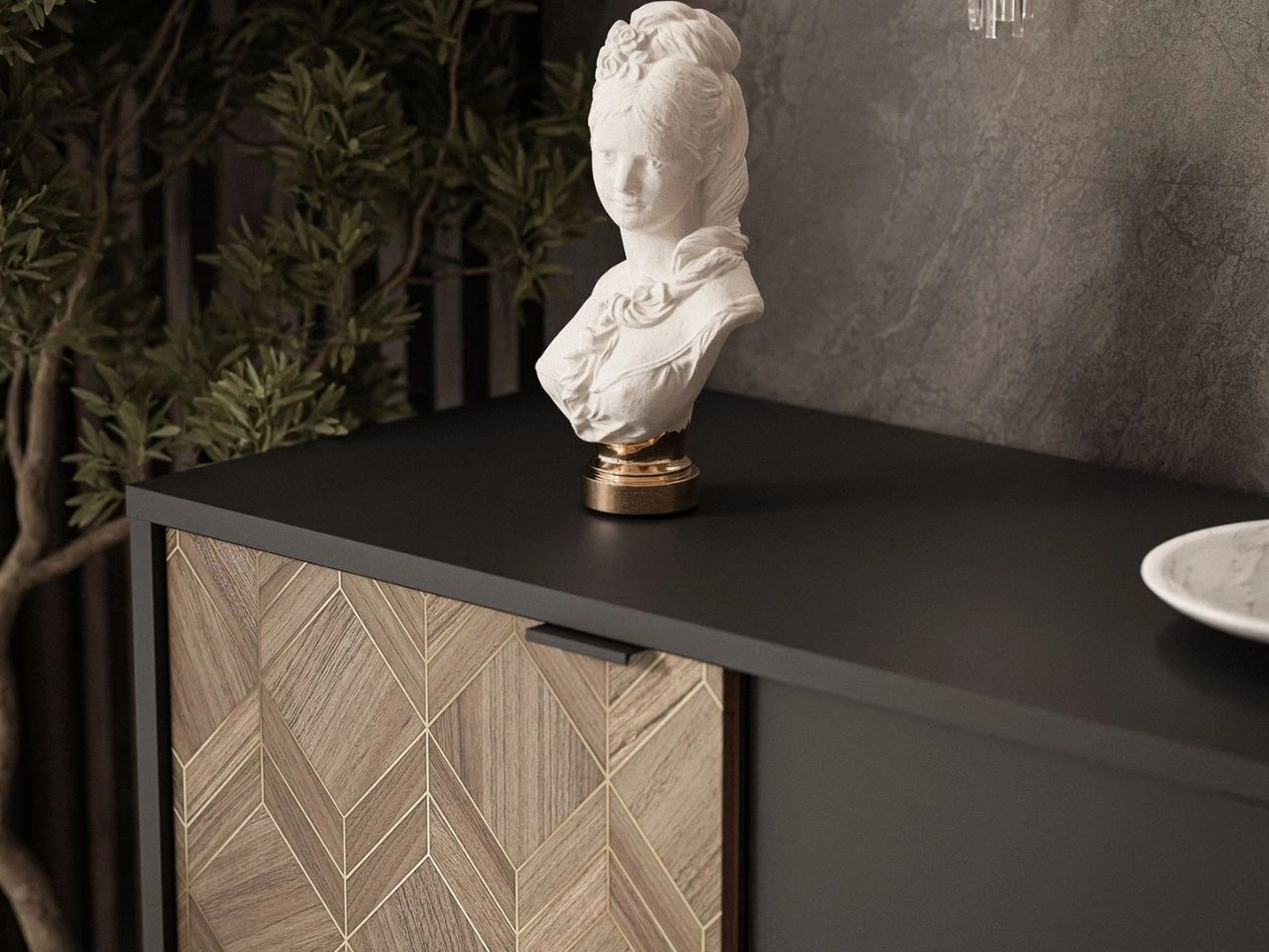 Kolekcja Tavio to synonim współczesnej elegancji w najlepszym wydaniu. Łączy w sobie ponadczasową prostotę formy z wyrafinowanymi detalami, które nadają jej niepowtarzalnego charakteru. Poprzez połączenie minimalizmu z elementami luksusu oraz natury powstały meble o harmonijnych proporcjach, utrzymane w stonowanej kolorystyce, przełamanej dekoracyjnymi akcentami z płyty pokrytej okleiną o wyglądzie drewna i złotem.