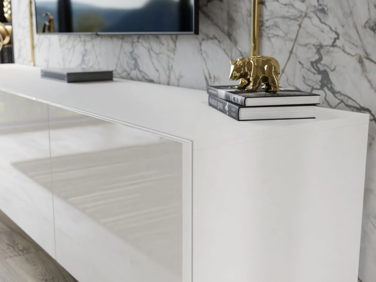 Meblościanka do salonu na srebrnych nogach Noaé Biały połysk