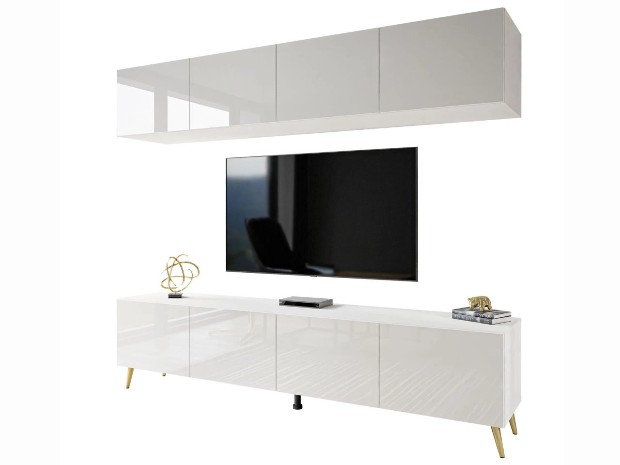 Meblościanka do salonu na złotych nogach Noaé Biały połysk